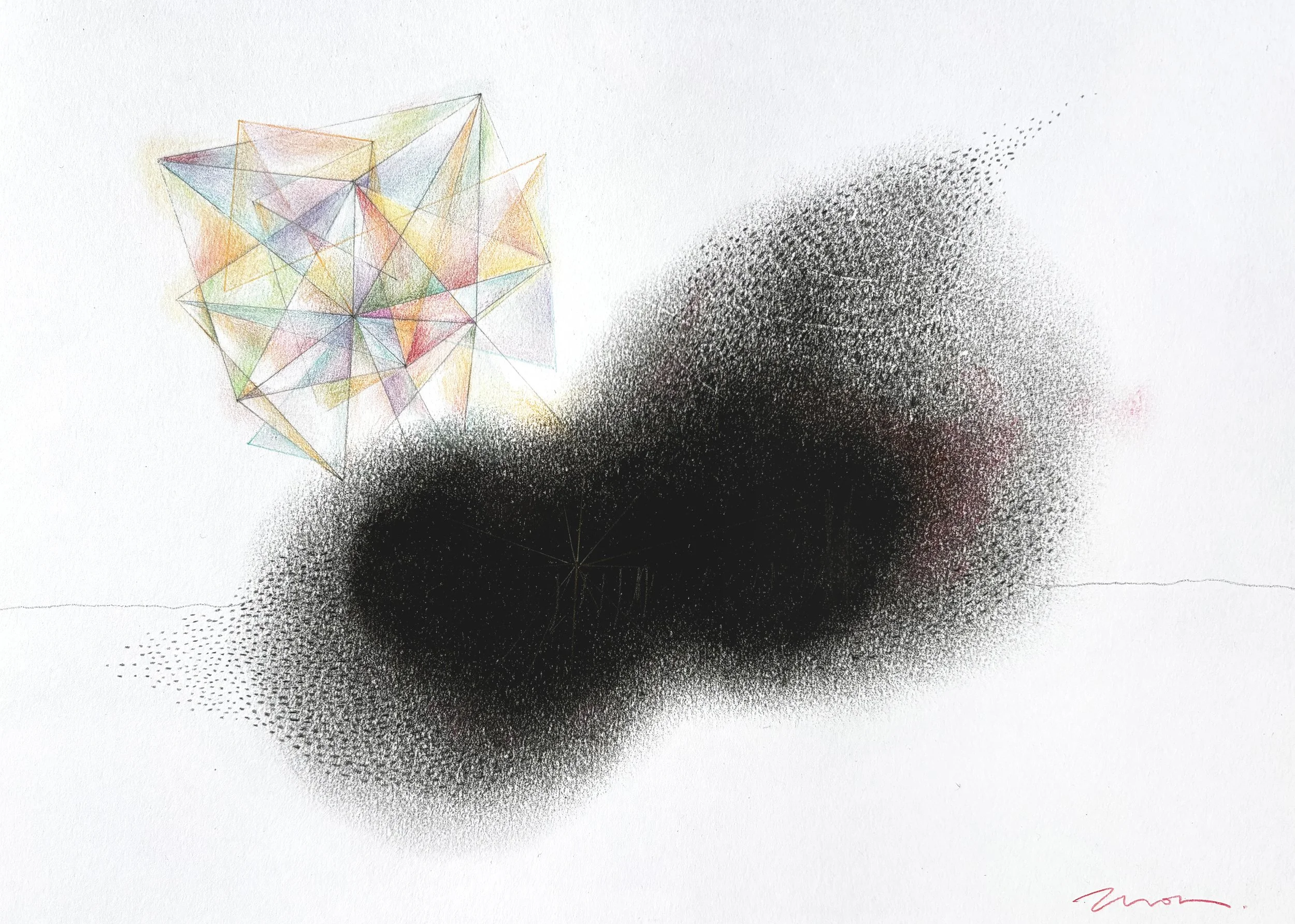 View fullsize Geometry of Thought Conceptual Drawing 2 Compressed charcoal, pastels, colour pencils on paper.2024297 x 210 mm